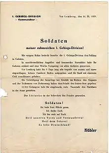 Daily Order of General Ludwig Kübler to the soldiers of 1st Mountain Division after the Battle of Lwów (September 21st, 1939)