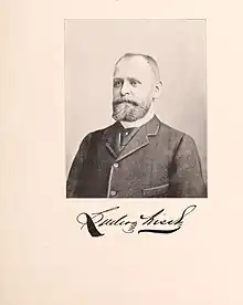 In May 1881, Nissen opened the jewelry shop "Schilling and Nissen" with the Hamburg diamond setter Fred Schilling. The company was burdened with debts, but had a quick upswing. In 1885 he founded his own firm, Ludwig Nissen & Co.[2] He moved his business to the most prestigious street in New York, Fifth Avenue. He became involved in the New York jeweler's trade union, and became its treasurer in 1891. In 1895 he rose to the rank of Vice President and, eventually, President. Other honorary offices brought him further respect: in 1897, he became Commissioner for the City of Brooklyn for the Atlanta Exhibition, in 1901 for the Pan-American Exposition in Buffalo, in 1898 he was elected President of the Manufacturers’ Association of New York and in 1900 he was appointed Treasurer of the New York State Commission for the World's Fair in Paris.[3][2]