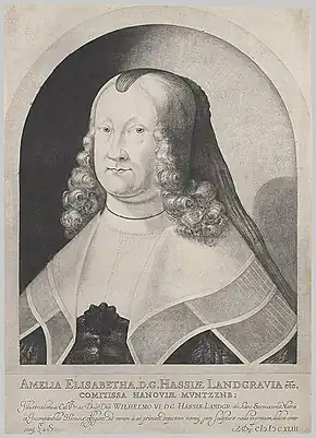 In a letter of 6 March 1641 to the Landgravine, Siegen announced that he had begun a portrait of her, and hinted that he would appreciate some money. News of his conversion had just reached the court, and the response seems to have been restrained. In August 1642, he finally finished the first known mezzotint engraving, a portrait of the Landgravine Amalia Elisabeth, Regent of Hesse-Kassel, the widow of his former employer. He sent this to her son, Landgrave William VI with a letter explaining that he had invented the process: