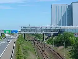 Trains approach the station by a bridge over the Øresund Motorway (E20). The platform area is constructed above the tracks of the Øresund Line adjoining a multi-storey car park. The station connects to the airport at the north end of Terminal 3 on level 2.