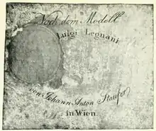 As a regular visitor to Vienna, Legnani cooperated with Johann Georg Stauffer and his son Anton to make guitars according to Legnani's design, to be followed by a number of other luthiers ("Nach dem Modell des Luigi Legnani" / 'after the model of Luigi Legnani').[5][6]