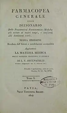 • Farmacopea generale (in Italian). Vol. 1. Pavia: Bolzani. 1814.
