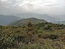 Luk Chau Shan viewed from the east from a nearby hill. Sha Tin Hoi and Tolo Harbour are visible in the background.