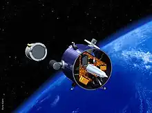 Lunar Prospector was the third mission selected by NASA for full development and construction as part of the Discovery Program.[2] At a cost of $62.8 million, the 19-month mission was designed for a low polar orbit investigation of the Moon, including mapping of surface composition including Lunar hydrogen deposits, measurements of magnetic and gravity fields, and study of lunar outgassing events. The mission ended July 31, 1999, when the orbiter was deliberately crashed into a crater near the lunar south pole, after the presence of hydrogen was successfully detected.[3][4]