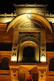 Fort Chanwa is a red sandstone fort. It was built around 1895 by Kaviraja Muraridan of Bhandiyawas who received Luni as jagir during the rule of Maharaja Jaswant Singh II of Marwar.[1] The red sandstone was brought from Jodhpur for construction. Later the fort became a heritage hotel.[2] Its main features are manicured gardens, carved lattice work friezes and Jharokas (or balconies).[3]