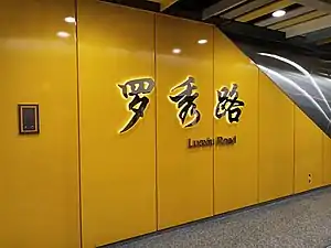 Luoxiu Road (simplified Chinese: 罗秀路; traditional Chinese: 羅秀路; pinyin: Luóxiù Lù) is a metro station on the Line 15 of the Shanghai Metro. Located at the intersection of Laohumin Road and Luoxiu Road in Xuhui District, Shanghai, the station was scheduled to open with the rest of Line 15 by the end of 2020.[1] However, the station eventually opened on 23 January 2021 following a one-month postponement.[2] The station is located between East China University of Science and Technology to the north and Zhumei Road to the south.