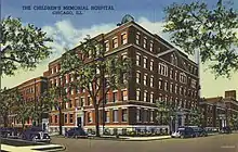 The hospital underwent further reorganization in 1904, ultimately changing the hospital's name from the Maurice Porter Children's Hospital to Children's Memorial Hospital (CMH).[16][17] A few years later, in 1907 the hospital was gifted an X-ray machine by local philanthropist, John Borland.[18]