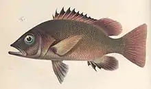 Lutjanus endecacanthus was first formally described in 1863 by the Dutch physician, herpetologist and ichthyologist Pieter Bleeker with the type locality given as "Ashantee in Guinea".[3] The specific name endecacanthus is a compound of endeka which means "eleven" and acanthus meaning a "thorn" or "spine", referring to the 11 spines in the dorsal fin.[4] Bleeker also described L. modestus in 1863 and it is not clear whether this is a synonym of this species or L. agennes,[2] Other authorities consider that this taxon may be a synonym of Lutjanus dentatus.[1]