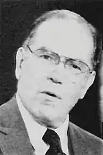 Lyndon Hermyle LaRouche Jr. (September 8, 1922 – February 12, 2019) was an American political activist who founded the LaRouche movement and its main organization, the National Caucus of Labor Committees (NCLC).[1][2][3][4] He was a prominent conspiracy theorist and perennial presidential candidate.[5][6] He began in far-left politics but in the 1970s moved to the far-right.[4][5][6] His movement is sometimes described as, or likened to, a cult.[7][8][9] Convicted of fraud, he served five years in prison from 1989 to 1994.[5][6]