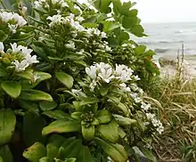 It is a biennial, growing to 50 cm tall. It has fleshy spathulate to obovate leaves. It produces white terminal racemes of flowers in late spring and early summer.[1][2]