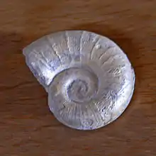 | Fossil of Lytoceras eudesianum from France, on display at Galerie de paléontologie et d'anatomie comparée in Paris | |
