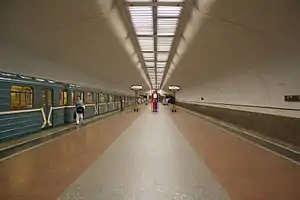 Lyublino (Russian: Люблино) is a Moscow Metro station in the Lyublino District, South-Eastern Administrative Okrug, Moscow. It is on the Lyublinsko-Dmitrovskaya Line, between Volzhskaya and Bratislavskaya stations.