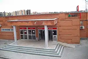 Móstoles-El Soto, is one of two railway stations serving the town of Móstoles in the Community of Madrid, Spain. It is situated on the Madrid-Móstoles-El Soto railway and is owned by Adif. The station currently serves as the western terminus of one of Madrid's commuter lines (Cercanías Madrid line C-5).