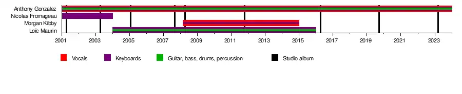 M83 (French pronunciation: [ɛm katʁ vɛ̃ tʁwa]) are a French electronic music group formed in Antibes in 1999. Initially the duo of multi-instrumentalists Nicolas Fromageau and Anthony Gonzalez, Fromageau parted ways shortly after touring for their second album Dead Cities, Red Seas & Lost Ghosts.[9] Gonzalez remains the sole constant member of the project, as the primary songwriter and lead vocalist.[upper-alpha 1]