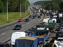 The Minsk Ring Road, or MKAD (МКАД), is the name of the beltway that goes around Minsk, Belarus. MKAD is an abbreviation of Minsk Automobile Ring Road (Belarusian: Мінская кальцавая аўтамабільная дарога; Russian: Минская кольцевая автомобильная дорога). The 56.2 kilometres (34.9 mi) road straddles the Minsk city limits.