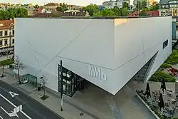 The museum was opened to the public on 18 October 2018 in the building designed by Studio Libeskind and Do Architects studio.[1][2] Total building floor area: 3100 sq.m., height: 17 m.[3] Architect Daniel Libeskind commented that although it is his smallest project, it is also one of his favorites, and he also noted that he used circular form in it for the first time (spiral staircase in the interior).[4] Italian news agency ANSA included Mo Museum into Top 10 21st century museums to visit.[5] The museum hosts numerous exhibitions, film screenings, educational workshops, concerts and other cultural events, which are intended for various age groups.[6]