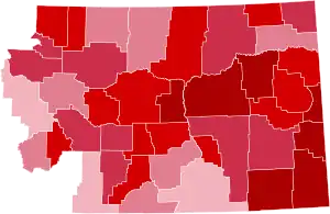 Except for the city of Helena and some Native American areas like Big Horn County and part of longtime national bellwether Blaine County, the district is powerfully Republican. Overall, it is the third-most-Republican district in the West, with a Cook Partisan Voting Index of R+16, and it voted for Donald Trump by nearly 27 percentage points in the 2020 presidential election. Geographically, it is the largest district in the U.S. to not contain an entire state.