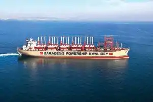 MV Karadeniz Powership Kaya Bey is a Liberia-flagged powership, a floating oil-burning power plant, owned and operated by Karpowership. Built in 1983 in Brazil and christened MV Gulf Grain, she sailed as a bulk carrier under various names and flags until she was acquired in 2009 to be converted into a Powership in Turkey.[1] The Powership supplied electricity to the power grid in Pakistan, then in Basra, Iraq.
