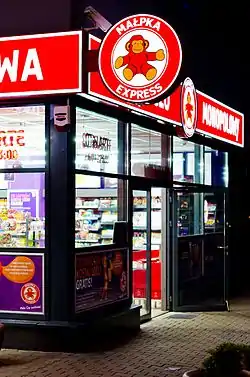 Małpka Express is a chain of local convenience stores, which primarily focus on grocery and liquor assortments. The chain has an index of over 2500 products. These products include: grocery items, sweets, vegetables and fruit, dairy, cakes, alcohol, tobacco products, newspapers and magazines, cleaning agents and cosmetics.