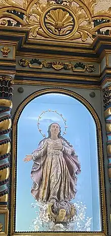 The original wooden image of Nuestra Señora de la Asuncion is a de tallado image where the Virgin is standing on a cloud with cherubs, has loose yet wavy hair, her right hand is outstretched and her left was on her chest looking upwards. The original yet fragile image is currently enshrined in a special chapel dedicated to her for veneration.