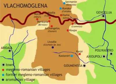 - ↑ "Κατάλογος των προσφυγικών συνοικισμών της Μακεδονίας (Catalogue of Refugee Communities in Greek Macedonia, including changes in Macedonian place-names". Archived from the original on 11 February 2009.