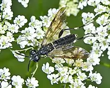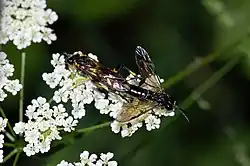 The adults of this sawfly can mostly be encountered from May through July.[3] Adults mainly feed on pollen and nectar, especially on Heracleum sphondylium,[4] but they feed also on honeydew and small insects.[3] The larvae are monophagous and develop on the leaves of blackberries and raspberries (Rubus fruticosus).[3][4]