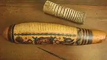 Macumba (from Kimbundu: ma'kôba) is a percussion instrument of African origin, similar to the reco-reco.[1]