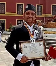 - ↑ sarasansarmedia (2022-09-19). "राष्ट्रपतिबाट ५८ कलाकर्मीलाई विभूषित". Sara Sansar Media. Retrieved 2022-11-04.