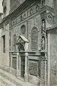 The original church at the site was founded in 1304 by a charitable order which translates into Confraternity of the Shameful Poor (Compagnia dei Poveri Vergognosi). By 1479 they began construction of the sculpturally rich stone Renaissance facade, with a design attributed to Egidio Montanari, and sculptures by Zilio Montanari.[1]