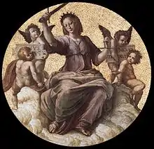 Justice, Stanza della Segnatura, Raphael's Rooms, Vatican Palace, similar in dress, frame and angle of the head to Madonna of Loreto