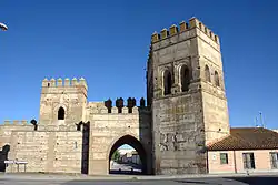 The town was encircled by walls in the Middle Ages (following a near-circular outline).[5] Today some parts of the walls are still preserved, most notably the southwestern part.[6] Madrigal experienced a massive rural flight after the 1950s.[6] The Junta of Castile and León declared the historical centre of the municipality as bien de interés cultural (conjunto histórico) in September 2020.[7]