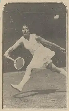 Her best singles results in a Grand Slam tournament were achieved at the French Championships. At the 1928 Championships she reached the quarterfinal which she lost in straight sets to eventual champion and World no.1 Helen Wills.[6] In 1935 she again reached the quarterfinal and was defeated by Margaret Scriven.[7] At the 1936 Championships she was seeded sixth but lost in the third round to Marie-Louise Horn. Her best result came at the 1938 Championships when, seeded seventh and at age 35, she made it to the semifinal in which she was beaten by Nelly Adamson.[8]