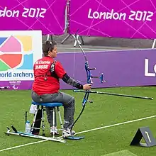 In 2016, she was surprised and delighted when she again joined the Swiss team at the Paralympics in Rio 2016.[4] 105 athletes were sent to Rio and 21 of those were paralympians. Comte and Martin Imboden were the only paralympian archers.[5] Comte is known as "Gumy". She is left handed and draws a 27 inches (69 cm) arrow at 36 pounds (16 kg).[6]