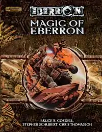 Magic of Eberron is an accessory for the Eberron setting that exposes the magic and eldritch wonders of Eberron. In addition to presenting new arcane and divine spells, feats, prestige classes, and magic items, Magic of Eberron offers new options and infusions for artificers, explores dragon totem magic and the twisted experiments of the daelkyr, sheds light on the process of elemental binding, and touches on other types of magic present in the world.