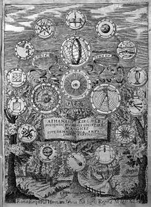 Magnes sive de Arte Magnetica ("The Lodestone, or the Magnetic Art") is a 1641 work by the Jesuit scholar Athanasius Kircher.[1]:192 It was dedicated to Emperor Ferdinand III and printed in Rome by Hermann Scheuss.[2] It developed the ideas set out in his earlier Ars Magnesia and argued that the universe is governed by universal physical forces of attraction and repulsion. These were, as described in the motto in the book's first illustration, 'hidden nodes' of connection. The force that drew things together in the physical world was, he argued, the same force that drew people's souls towards God.[3][4][5]:15 The work is divided into three books: 1.De natura et facultatibus magnetis (Of the nature and properties of magnets), 2.Magnes applicatus (Applications of magnets), 3.Mundus sive catena magnetica (The world or the magnetic chain).[4][3] It is noted for the first use of the term 'electromagnetism'.[6]