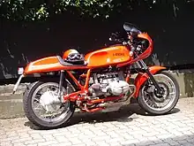 The MB1 was again a naked bike and used the BMW suspension and wheels, whereas the MB2 had a fairing, Forcella Italia (formerly Ceriani) and EPM wheels.[7] Production was terminated when BMW launched the four-cylinder K100 and discontinued the boxer engine. 150 units were produced, but sales were slow, the last one only being sold ten years later. Arturo Magni said of the poor sales "They seem to believe that, whereas a European chassis manufacturer could certainly improve on what Honda or another Japanese manufacturer could produce, the same could never true of their beloved BMWs."[6]