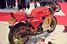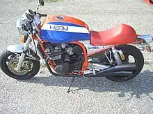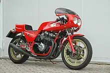 Following the demise of MV Agusta in 1978, Magni turned to Honda for a supply of engines. An agreement to use the 4-cylinder CB900 Bol d'Or engine was made. Two variants were made; the naked MH1 which used Honda forks and wheels and the faired MH2, which used Italian forks, wheels and brakes.[2][30] The exact specification of the machines varied according to the purchaser's requirements. Some had Eckert engine tuning components fitted and produced 120 bhp (90 kW).[31] Around 300 Honda engined machines were made, many being sold in Germany.[4]