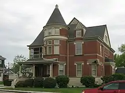 Magnus J. Carnahan House is a historic home located at Washington, Daviess County, Indiana. It was built between 1896 and 1902, and is a 2+1⁄2-story, Queen Anne style brick dwelling on a raised basement. It features a round corner tower with a conical roof, one-story porch and balcony, and complex hipped and gable roof. Also on the property is a contributing carriage house.[2]: 5