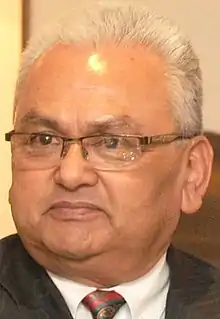 Mahendra Bahadur Pandey is a Nepalese politician and diplomat. A politburo member of the Communist Party of Nepal (Unified Marxist-Leninist), on 25 February 2014 he assumed the post of the Minister for Foreign Affairs of Nepal under Sushil Koirala-led government.[1][2][3] Since April 2020, he is the Ambassador of Nepal to China.[4][5] Due to the COVID-19 pandemic, he assumed his post from Kathmandu until September 2020.[6][7]