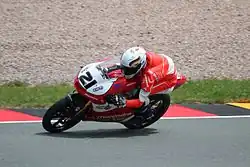 The Mahindra MGP3O is racing motorcycle manufactured by Mahindra which competed in the Moto3 class of Grand Prix motorcycle racing.[1][2] From 2016 this bike, as well as being raced by Mahindra itself, was used by Peugeot under the name Peugeot MGP3O.[3]