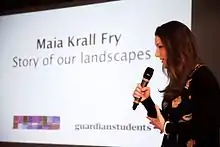 - ↑ Kate (16 November 2010). "maia krall fry: actor, director, sixth former". i am not a celebrity. Retrieved 26 June 2014.