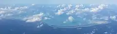 Maiana is an atoll in Kiribati and is one of the Central Gilbert Islands. Maiana is 44 kilometres (27 mi) south of the capital island of South Tarawa and has a population of 1,982 as of 2015. The northern and eastern sides of the atoll are a single island, whilst the western edge consists of submerged reefs and many uninhabited islets, all surrounding a lagoon. The atoll is 14 kilometres (8.7 mi) long and is very narrow, with an average width of less than 1 kilometre (0.62 mi) and a total land area (including uninhabited islets) of 16.72 square kilometres (6.46 sq mi).[1]