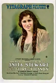 A movie poster for The Glory of Yolanda (1917) crediting Maibelle Heikes Justice under title