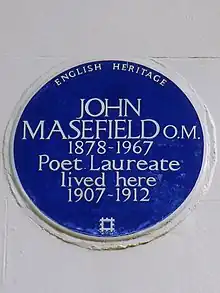 A blue plaque in the street commemorates the former residence of the poet John Masefield.[3] The actor Arthur Lowe, known for his role as Captain Mainwaring in the BBC television series Dad's Army, lived in Maida Avenue from 1969 to 1982.[4]