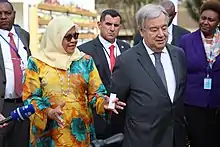 On 22 January 2018, Sharif assumed her post at UN-Habitat's Headquarters in Nairobi, Kenya.[21] She succeeded Joan Clos of Spain.[19] In January 2019 Maimunah Mohd Sharif was designated as the Acting Director-General of the United Nations Office at Nairobi following the appointment of her predecessor, Hanna Tetteh, as Head of the United Nations Office to the African Union in Addis Ababa.[22] She was replaced by incumbent Zainab Bangura, who was appointed on 30 December 2019.[23]