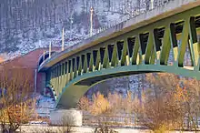 The Main Viaduct is a double track railway bridge across the River Main at Nantenbach, Germany. It is a continuous truss girder bridge with a main span that is 208m long, with a 12.5% slope and a radius of 2650m. The full length of the structure is 374.4m and the side spans are each 83.2m long.[1]