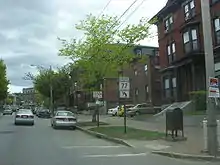 Upon entering Portland proper, SR 77 crosses over U.S. Route 1A (US 1A) with indirect access available via connecting streets. The highway splits into a one-way pair, High Street northbound and State Street southbound. The SR 77 designation continues north for another 0.9 miles (1.4 km) before terminating at Park Street. This intersection is the signed eastern terminus of SR 22, and administratively SR 25, although the latter is not signed.[2] In addition, the highway also passes Cumberland Avenue just to the south, the former southern terminus of SR 26. The one-way northbound alignment of SR 77 on High Street is not officially part of the route as designated, because State Street was formerly a two-way street (prior to the 1990s).