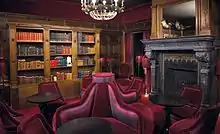 Today renamed Salon des Petits Bonheurs, it consists of a hidden bar where refined dishes and precious spirits are found, a library, board games, a monumental fireplace and woodwork inherited from the late nineteenth century.[2][12]