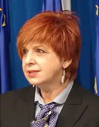In 1997, she was appointed State Secretary at the Ministry of Culture under Jožef Školč. In the 2000 parliamentary elections, she was elected to the Slovenian National Assembly on the list of the Liberal Democracy of Slovenia. She was re-elected in 2004. During the centre-right government of Janez Janša between 2004 and 2008, she emerged as the main opposition speaker in culture and media policy, strongly criticizing conservative Minister of Culture Vasko Simoniti. The two developed a personal animosity, which was well known to the public.[2][3]