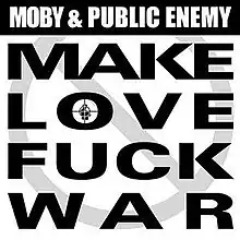 "Make Love Fuck War", also called "MKLVFKWR", is a song by electronica musician Moby and hip hop group Public Enemy. It was released as a single on July 2, 2004.[1] The song is featured on Unity: The Official Athens 2004 Olympic Games Album and Public Enemy's album, New Whirl Odor. It was initially released as a protest to the 2003 Iraq War; the music video combines footage from 2002–2003 urban protests against the war with footage from previous concerts of both participants in the single.
